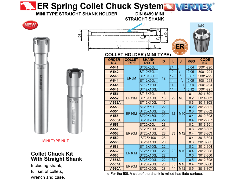 • Bầu kẹp dao phay mini chuôi trụ ER riêng lẻ: V-541, V-542, V-543, V-544, V-545, V-546, V-551, V-552, V-552A, , V-553, V-554, V-555, V-555A, V-556, V-557, V-558, V-559, V-560, V-561, V-562, V-563, V-563A, V-557A, V-560A