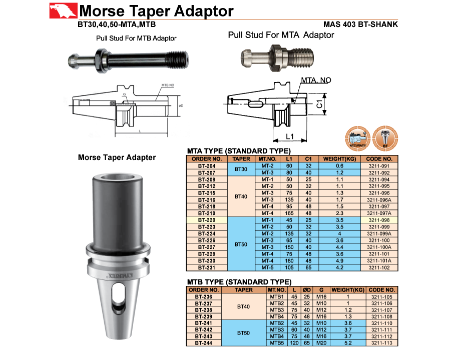 • Bầu kẹp nối chuyển côn BT-MT, MTB Vertex (Morse Taper Adaptor) BT-204; BT-207; BT-209; BT-212; BT-215; BT-218; BT-219; BT-220; BT-223; BT-224; BT-226; BT-227; BT-229; BT-230; BT-231; BT-236; BT-237; BT-238; BT-239; BT-241; BT-242; BT-243; BT-244