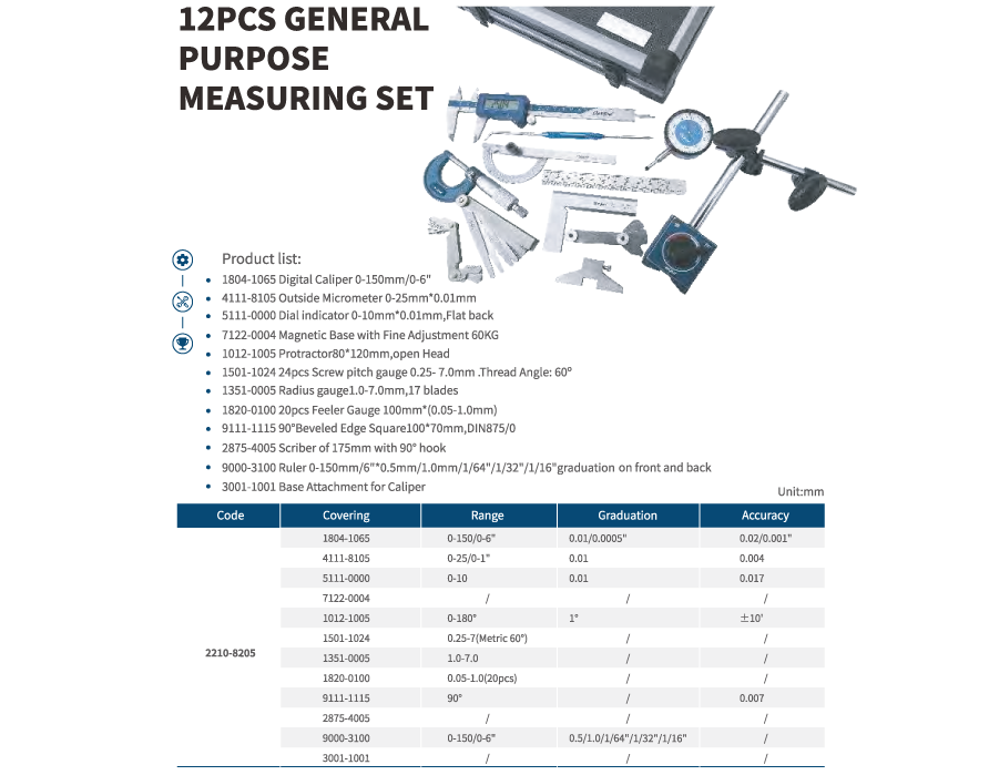 • 12PCS GENERAL PURPOSE MEASURING SET 2210-8205