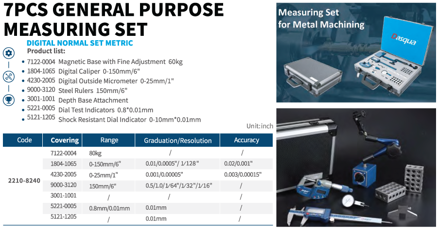 • 7PCS GENERAL PURPOSE MEASURING SET Digital Normal Set Metric model 2210-8240