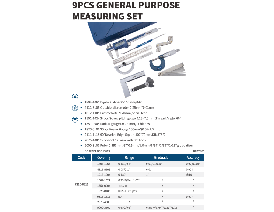 • 9PCS GENERAL PURPOSE MEASURING SET 2210-8215