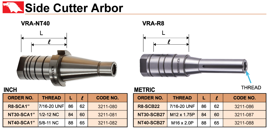 • Chuôi dao gắn đầu phay vuông góc Vertex (Side Cutter Arbor) model R8-SCA1, NT30-SCA1, NT40-SCA1, R8-SCB22, NT30-SCB27, NT40-SCB27