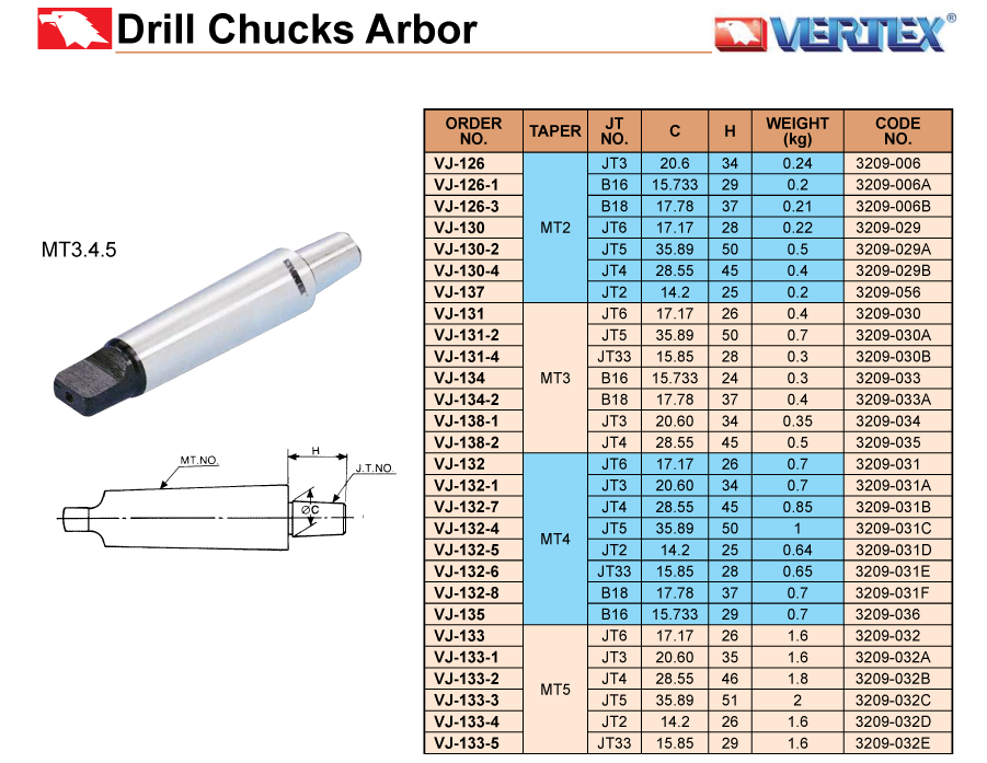 • Chuôi kẹp mũi khoan chuôi MT2.3.4.5: VJ-126, VJ-126-1, VJ-126-3, VJ-130, VJ-130-2, VJ-130-4, VJ-137, VJ-131, VJ-131-2, VJ-131-4, VJ-134, VJ-134-2, VJ-138-1, VJ-131-2, VJ-138-2, VJ-132, VJ-132-1, VJ-132-7, VJ-132-4, VJ-132-5, VJ-132-6, VJ-132-8, VJ-135, VJ-133, VJ-133-1, VJ-133-2, VJ-133-3, VJ-133-4, VJ-133-5.