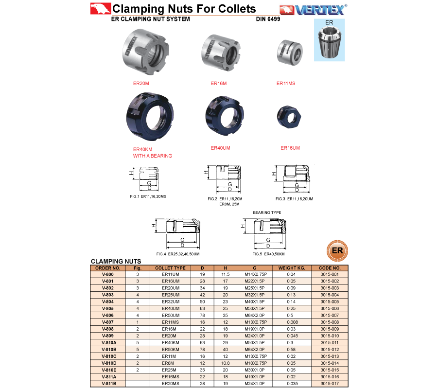 Mã: ER16, ER20, ER25, ER32, ER40 (V16040L → V40260L)