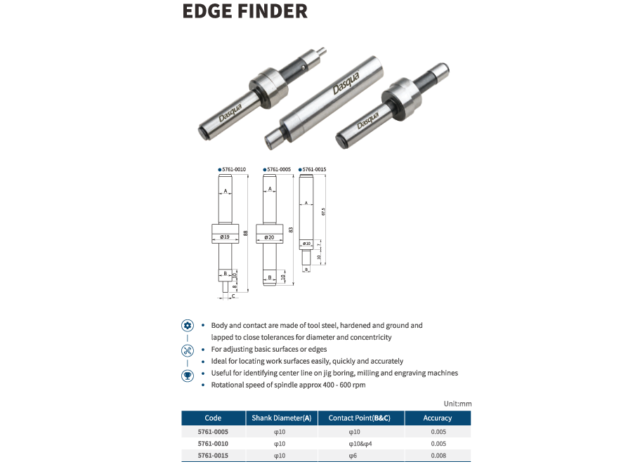 • Edge Finder 5761-0005, 5761-0010, 5761-0015.