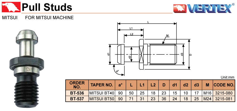 • Pull Stud For Mitsui Machine model BT-536, BT-537