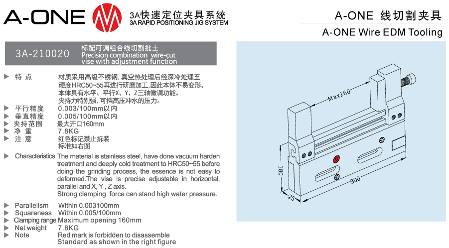 Ê tô EDM điều chỉnh đa hướng chính xác 3A-210020 A-one