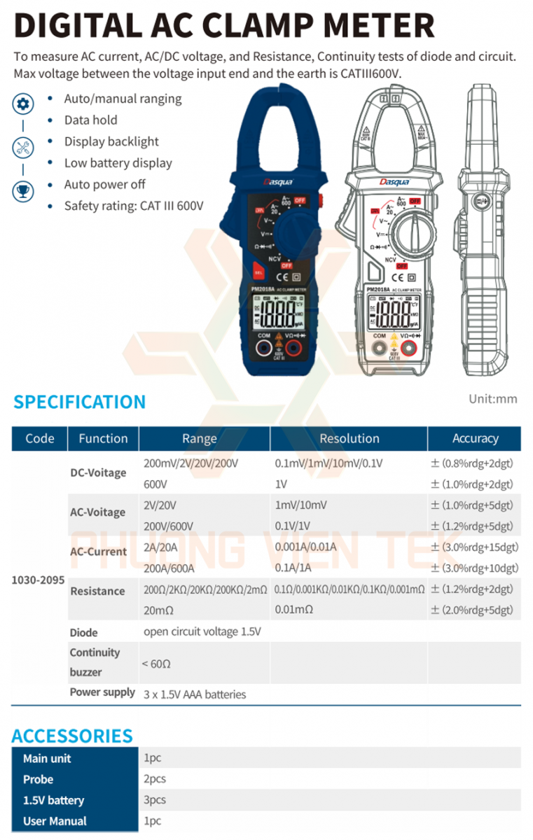 Máy Điện Tử Đo Kẹp AC 1030-2095 Dasqua