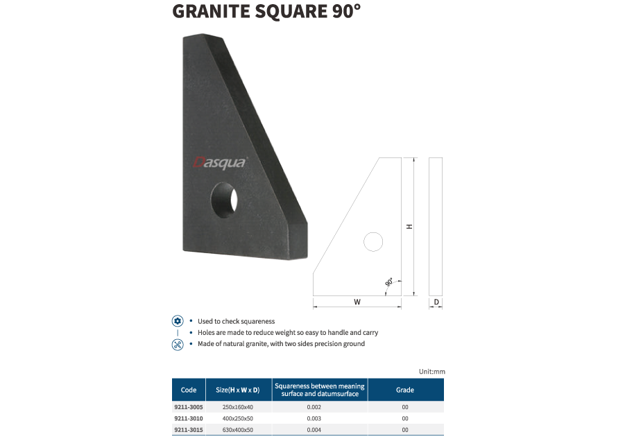 • Granite Square 90° dùng để kiểm tra độ vuông